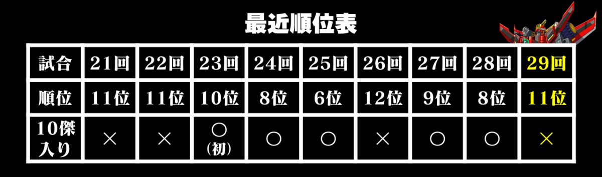 とりあえず、今回は前回11位から3位上がった8位として終わることができました