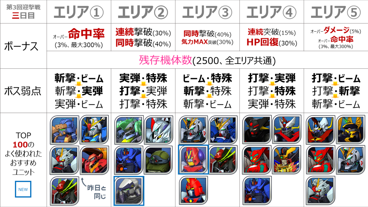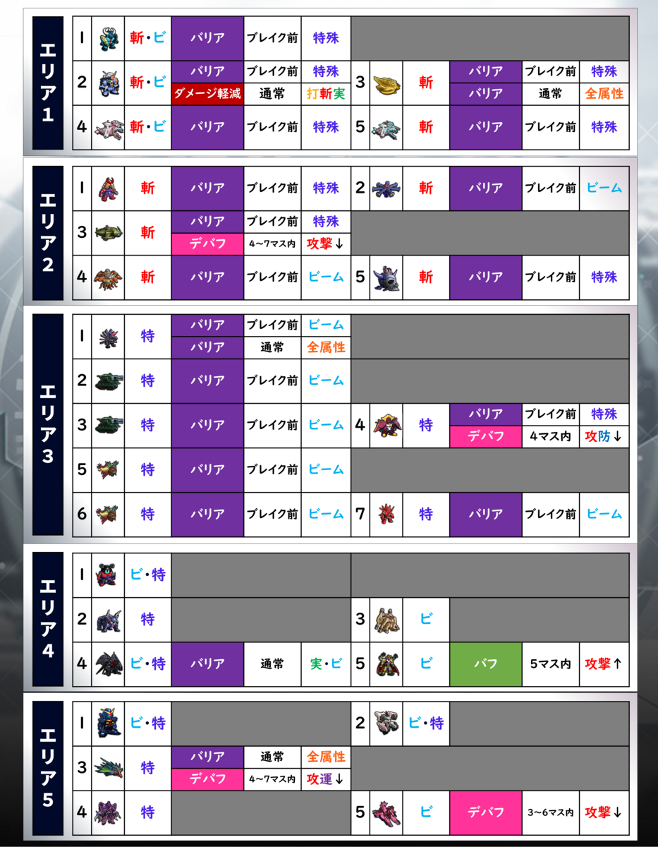 僕がツイッターで載せている迎撃戦まとめ画像では、ボスごとに特徴は詳しく書いてなかったですね。