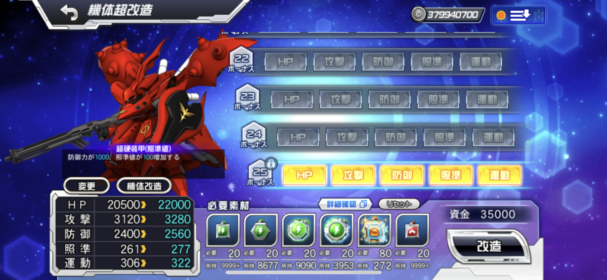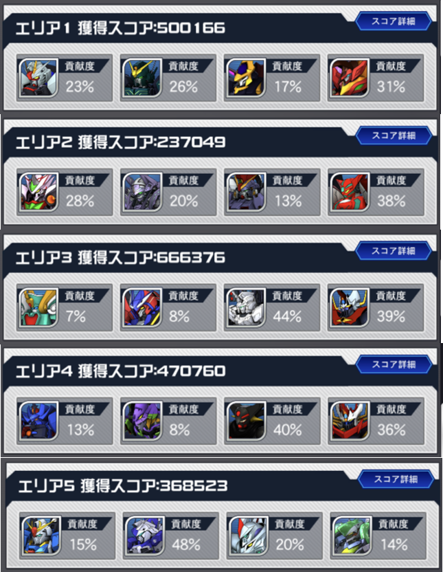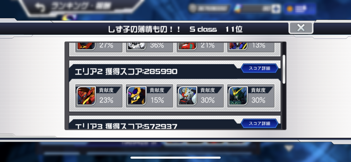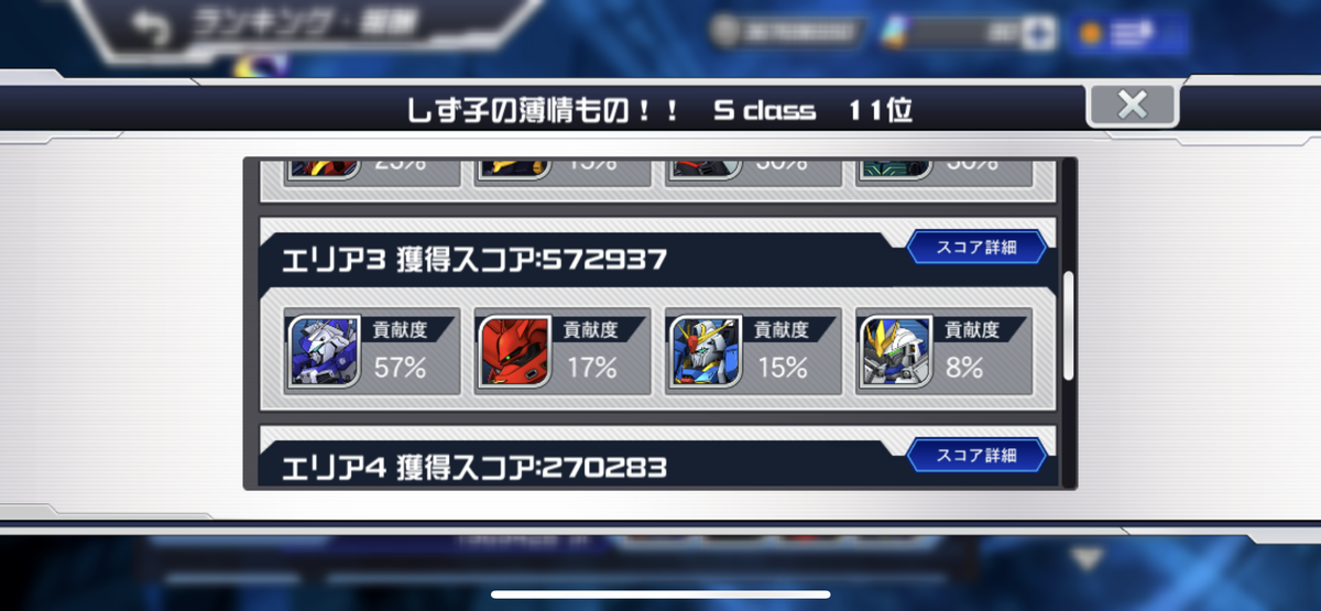 ツイッターでもおっしゃいましたが、これは完全にHλLさんが戻ってきて(?)プレイ動画を載せてくださったおかげです。再び有難うございます。なんなら、僕はほぼ最初からHλLさんのプレイにドハマって、その高みへ辿り着くため、迎撃戦の目標や基準として育成方針を決めてましたねぇ。例えば、HλLさんのユニコーンガンダムの強さが羨ましくてユニコーンにガチ投資してから、ヘビーアームズも、続いて攻撃チップも真似したりしました。まだ足りないですが、心臓を売った結果、それでHλLさんの動画を結構真似できるようになり、HλLさんが載せてくださったエリアでは結構良いスコア取ってますので嬉しい限りです
