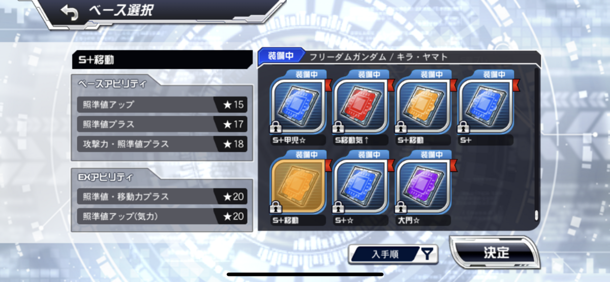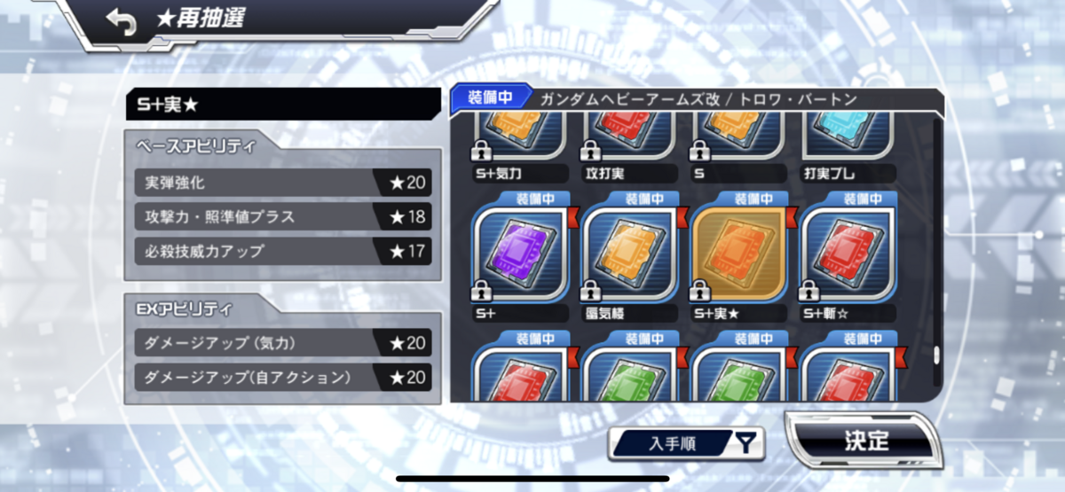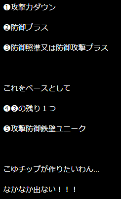 ここで前の4つは必須級で、その後枠の余裕があれば自分の好みに合わせてつける感じだと思われる