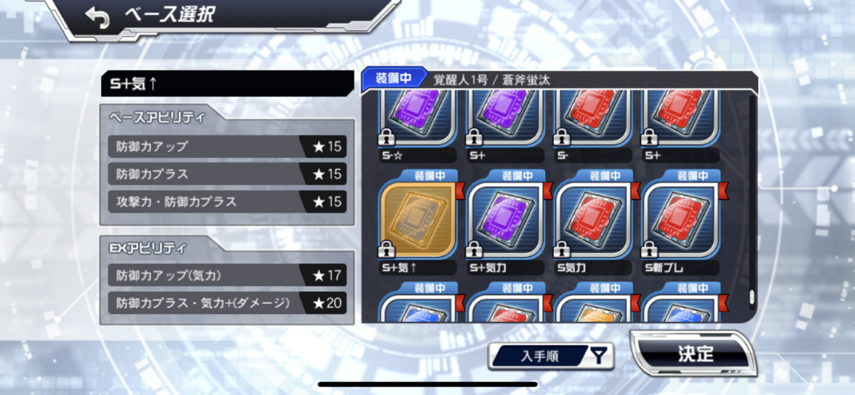 ①、②つけた時代は、ツーMAPじゃなく、覚醒でブレイクしてからMAPを打つ形でしたので、あんまり火力を上げなくてもボスを倒せましたが、現在、2MAP使うためには、ブレイクしてないときも一撃したいため、③のように与ダメチップを使っています。